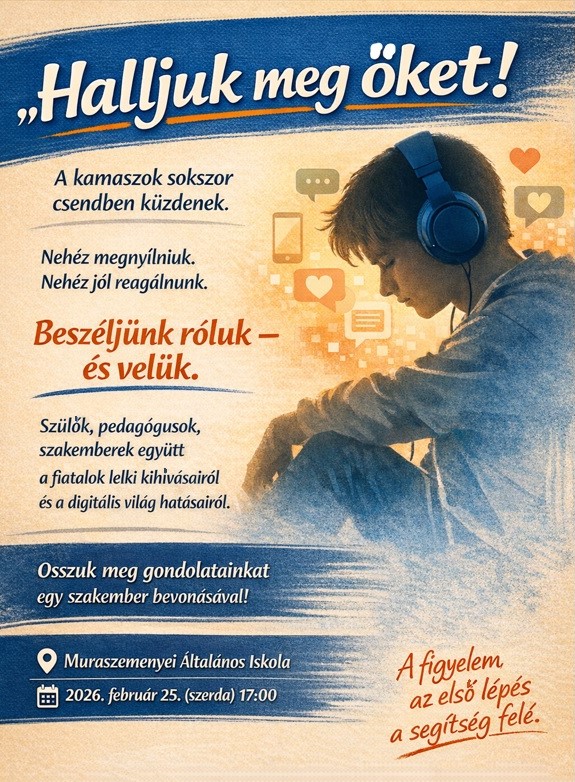 Események "Halljuk meg őket!" 2026. február 25., szerda @ 17:00 Megosztás vissza a hírek & eseményekhez