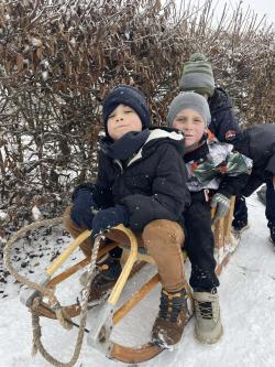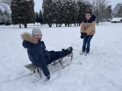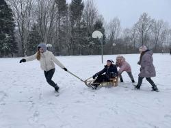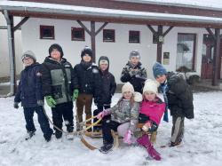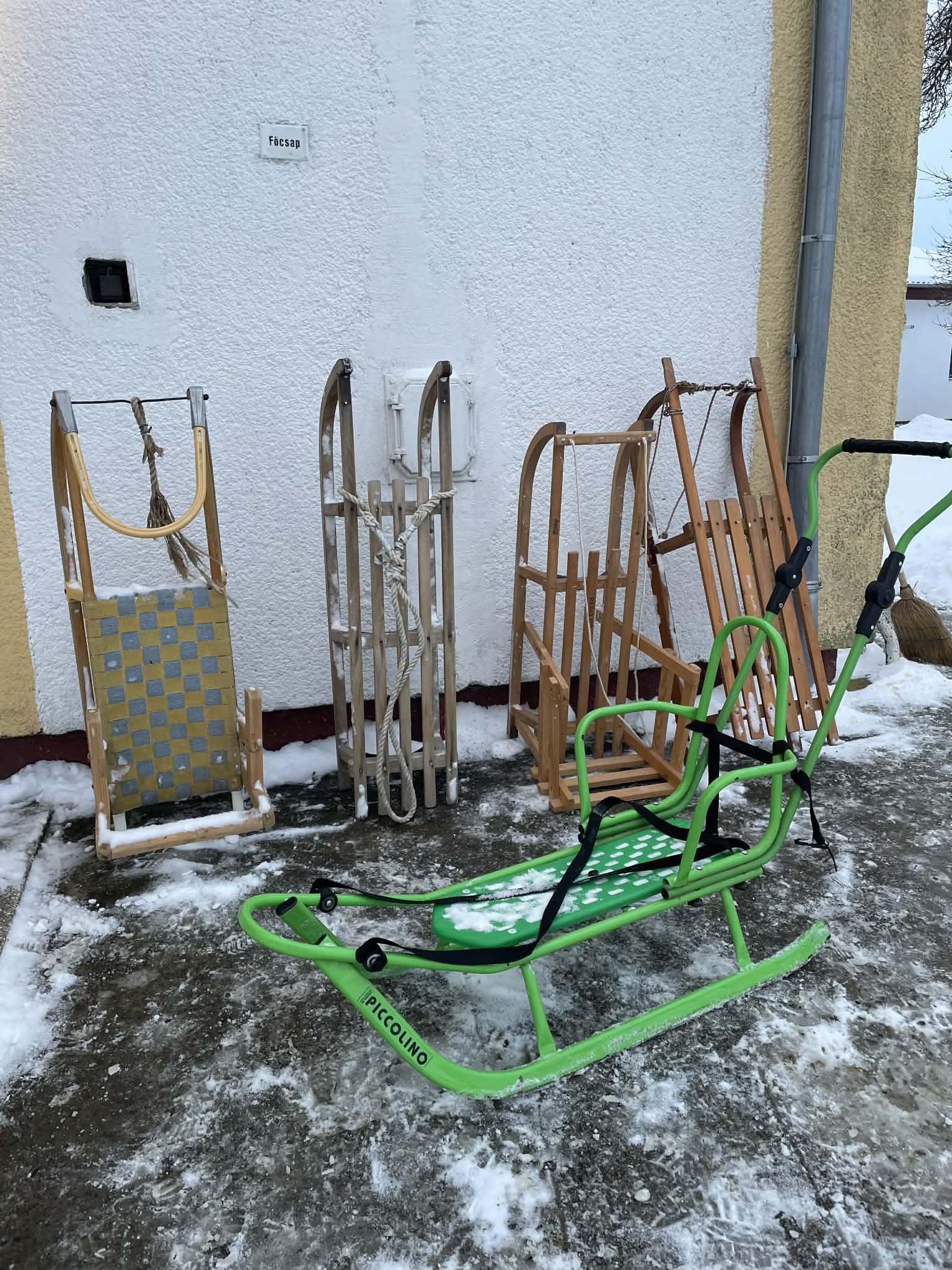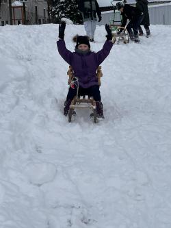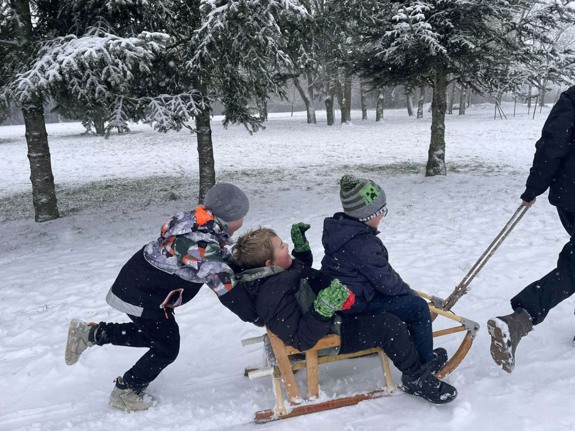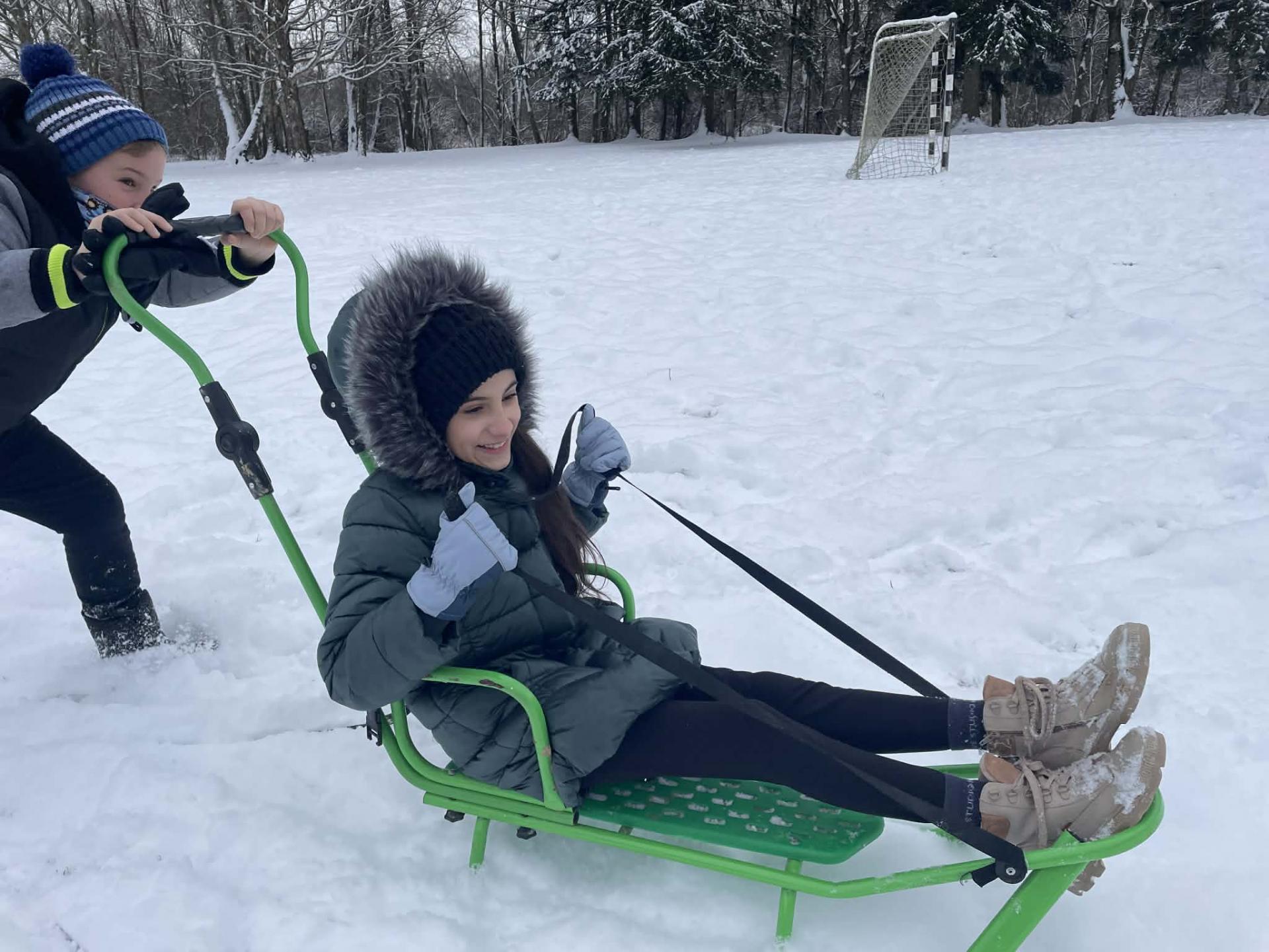 Többen szánkóval érkeztek iskolába, az épület előtt pedig már egy igazi „szánkópark” alakult ki. A leglelkesebbek még a hó eltakarításában is segédkeztek.